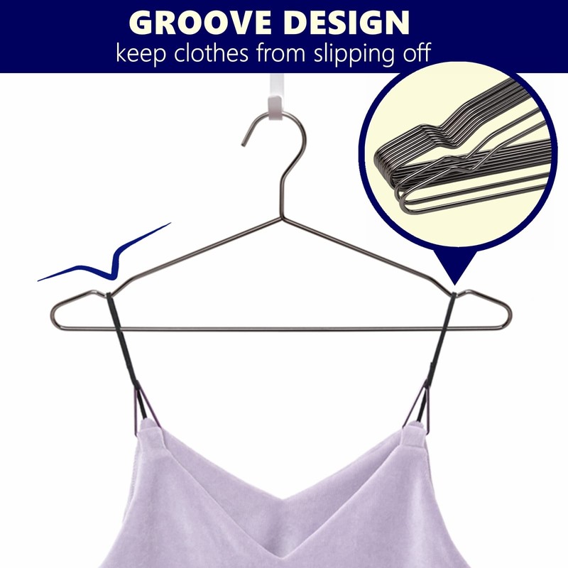 - 【Bilateral Notches】Convenient V-shape notches along the hanger shoulder allow you to effortlessly hang thin strappy camisoles, nightgowns and slip dress, prevents clothing from falling.