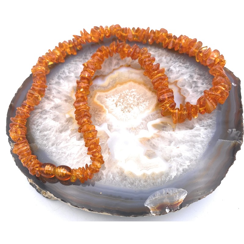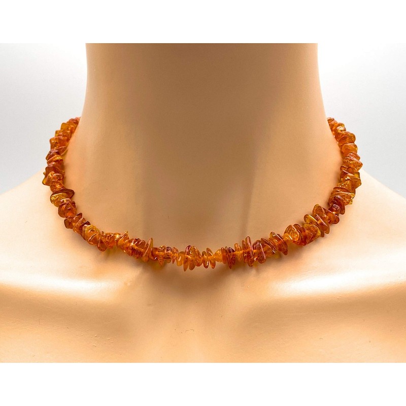 - The brown, rounded amber chips of this necklace are approx. 8mm in size.