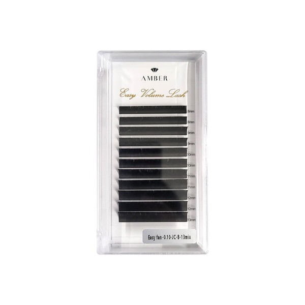Amber Lash Easy Volume Lash MIX Tray, for Easy Fanning Eyelash Extension with Various Curls in 0.10 mm Thickness (C Curl)
