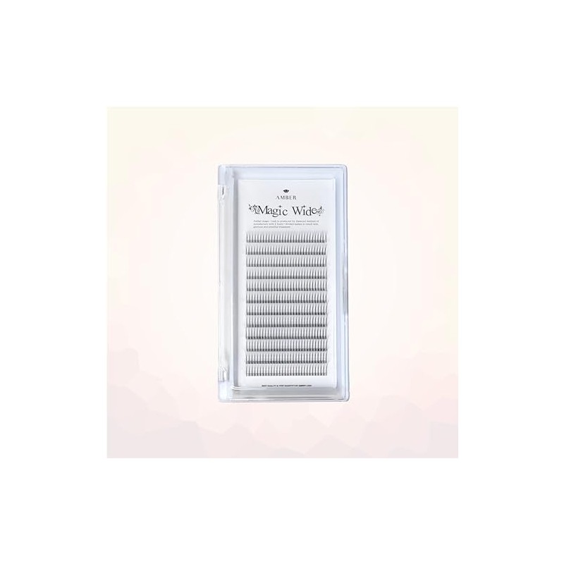 Amber Magic Wide 2D is made using the highest quality fibers to provide comfort without any foreign body sensation and to minimize fan separation. The curl of the fan does not easily come loose and remains constant, maintaining the best shape of eyelashes. In addition, it is made with a narrow width, so the shape is neat when extending eyelashes, and the thickness of 0.15 makes it look more clear.