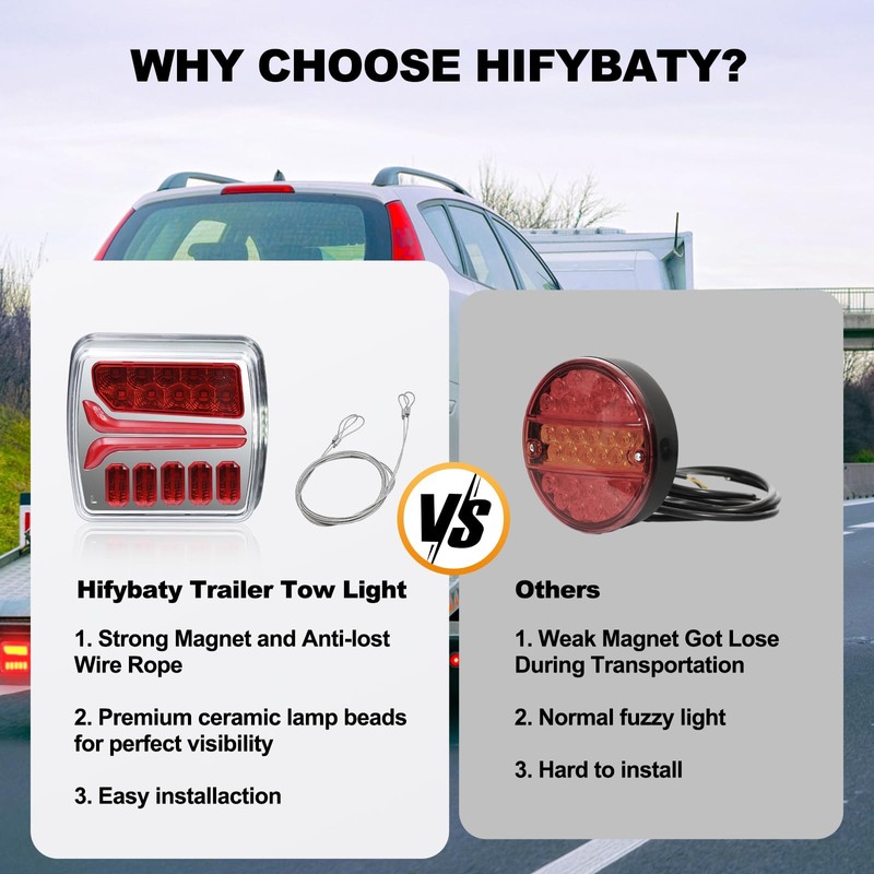 Hifybaty [2024 UPGRADE Wireless Trailer Lights - Rechargeable Magnetic LED Trailer Light Kits for Towing Truck Waterproof Tow Lights Kit with Anti-lost Wire Rop