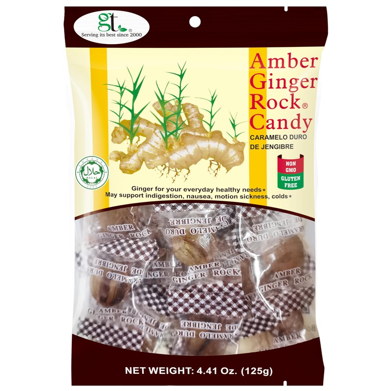 GT Amber Ginger Rock Candy, 4.41 Ounce Bag