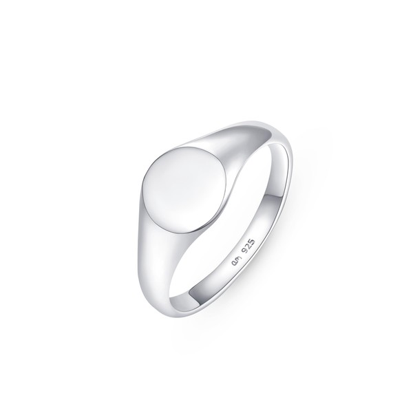 - PLAIN RING - Crafted from high-quality sterling silver, this round signet ring boasts a shiny, polished finish, giving it a premium feel and appearance. It perfectly complements a classic chain or a pair of statement earrings, enhancing your look with its lustrous charm and refined design, regardless of the occasion.