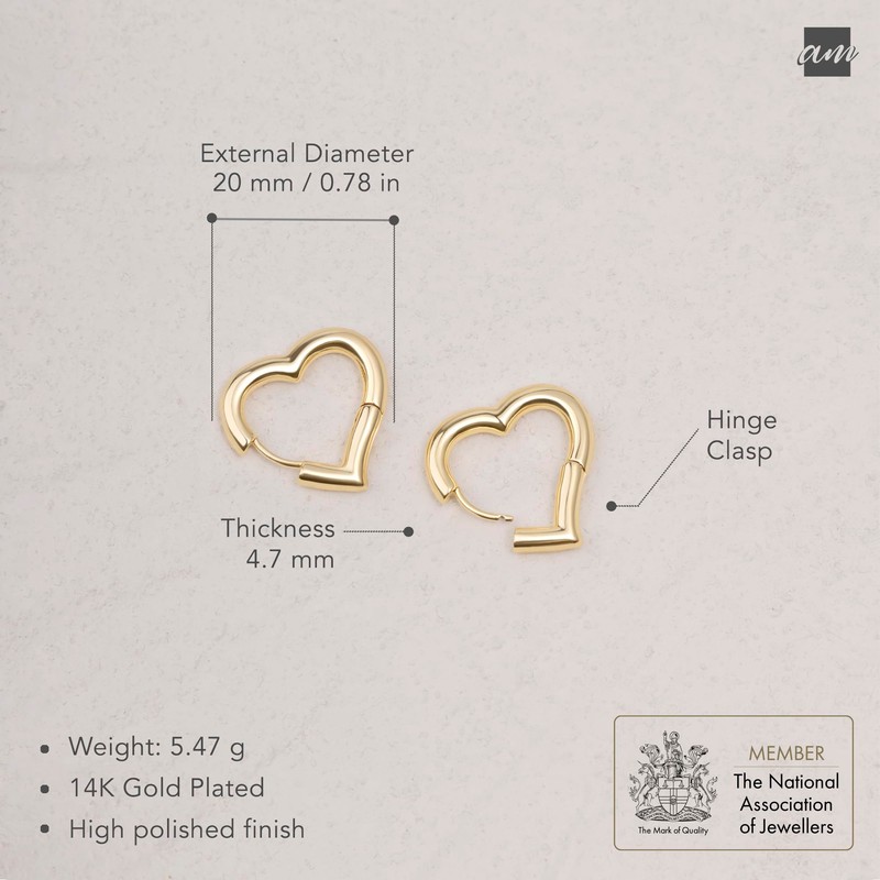 - DIMENSIONS - Our heart hoops are lightweight, durable, and easy to style, providing maximum comfort and making them perfect for everyday wear. Hoop Thickness: 2.8 mm. Hoop External Diameter: 20 mm. Hoop Internal Diameter: 14 mm. Weight: 5.47 g.