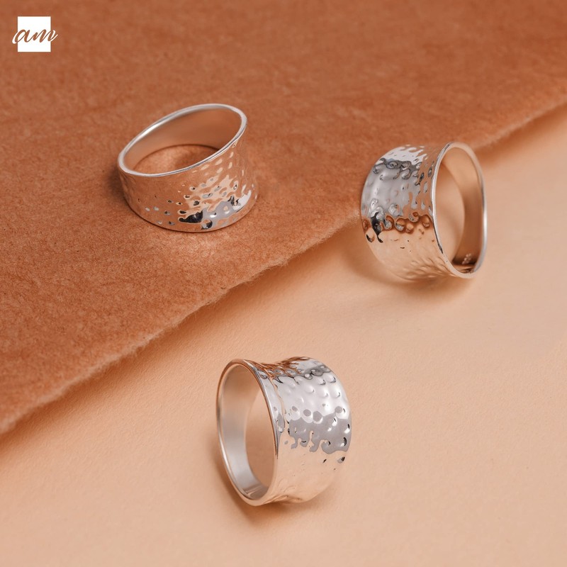 • HAMMERED SILVER RING - This silver plain ring has unique hammered texture, to add a lovely sparkle to your style. An elegant item of our minimalistic collection.
