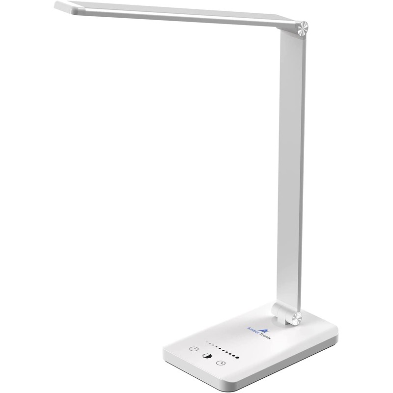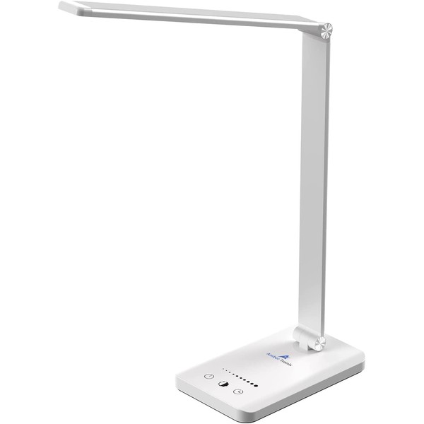 Ambertronix LED Desk Lamp with USB Charging Port, Dimmable Eye-Caring Reading Desk Light for Home, with 5 Brightness Level & 3 Lighting Modes, Touch Control, Auto Timer (White)