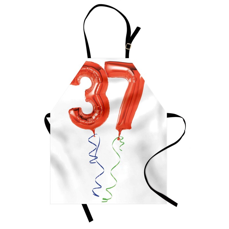 Ambesonne 37th Birthday Apron, Older It Gets Flying Party Balloons Surprise Years New Age Birthday Picture, Small Apron Bib with Adjustable Ties for Baking Painting, Small Size, Red White