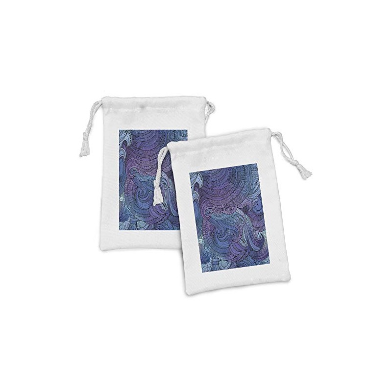 Ambesonne Abstract Fabric Pouch Set of 2, Ocean Inspired Graphic Paisley Swirled Hand Drawn Artwork Print, Small Drawstring Bag for Toiletries Masks and Favors, 9" x 6", Purple Blue
