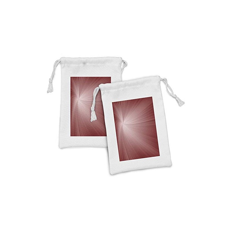 Ambesonne Abstract Fabric Pouch Set of 2, Ombre Effect Twirling Rays Futuristic Lines Spiral Design Print, Small Drawstring Bag for Toiletries Masks and Favors, 9" x 6", Burgundy Dried Rose