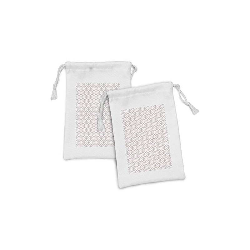 Ambesonne Abstract Fabric Pouch Set of 2, Pattern of Circles Inside Hexagons in Ornamental Style and Geometrical Design, Small Drawstring Bag for Toiletries Masks and Favors, 9" x 6", Dried Rose
