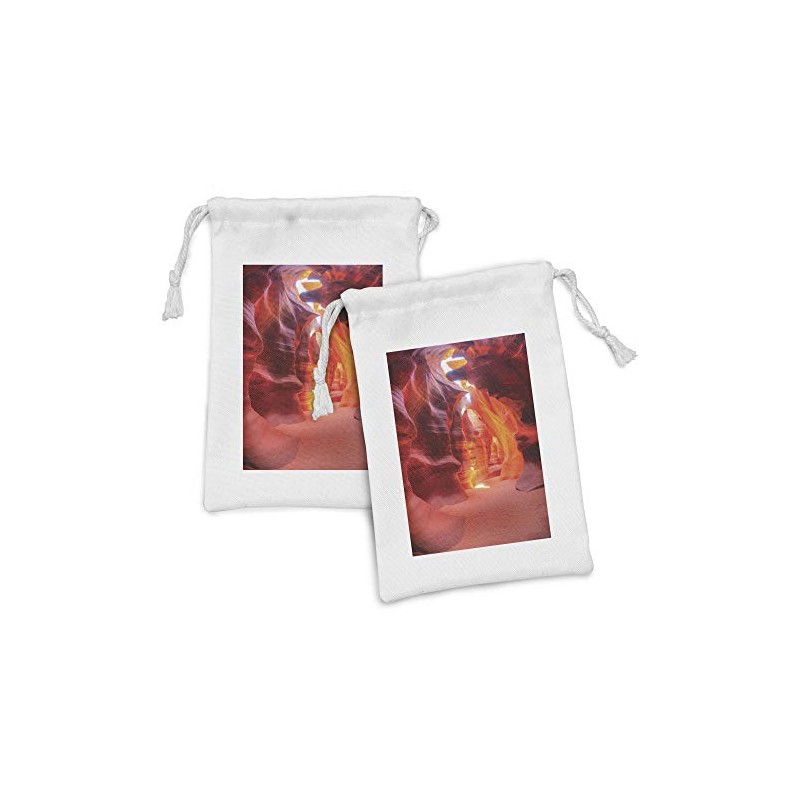 Ambesonne Americana Fabric Pouch Set of 2, Sunbeam Piercing Through Sandstone at High Noon in Antelope Canyon Picture, Small Drawstring Bag for Toiletries Masks and Favors, 9" x 6", Orange Coral Red