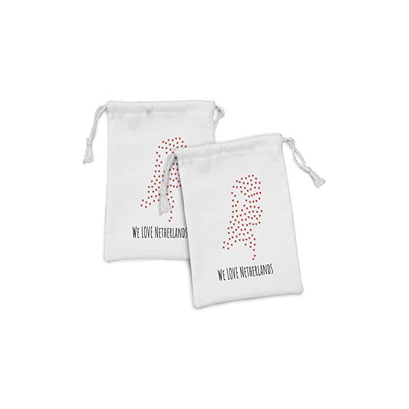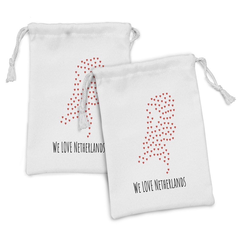 Ambesonne Amsterdam Fabric Pouch Set of 2, We Love Netherlands Calligraphy Drawn by Hand with Hearts, Small Drawstring Bag for Toiletries Masks and Favors, 9" x 6", Vermilion Charcoal Grey