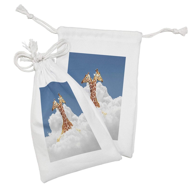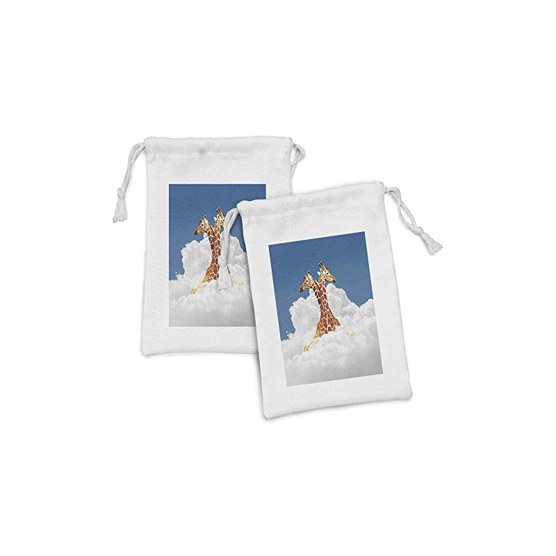 Ambesonne Animal Fabric Pouch Set of 2, Romantic Couple Giraffes on Clouds Happy Lovers Valentines Art Style Display, Small Drawstring Bag for Toiletries Masks and Favors, 9" x 6", White Blue
