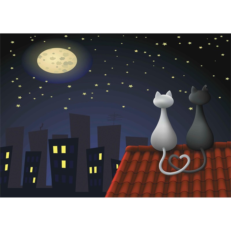 Ambesonne Animal Soap Dispenser & Toothbrush Holder Set, Cats on The Roof Couple Valentines Animal Kitten Kitty Night Full Moon Starry Sky, Ceramic Bathroom Toiletry Accessories, 2 Pcs, Grey Yellow