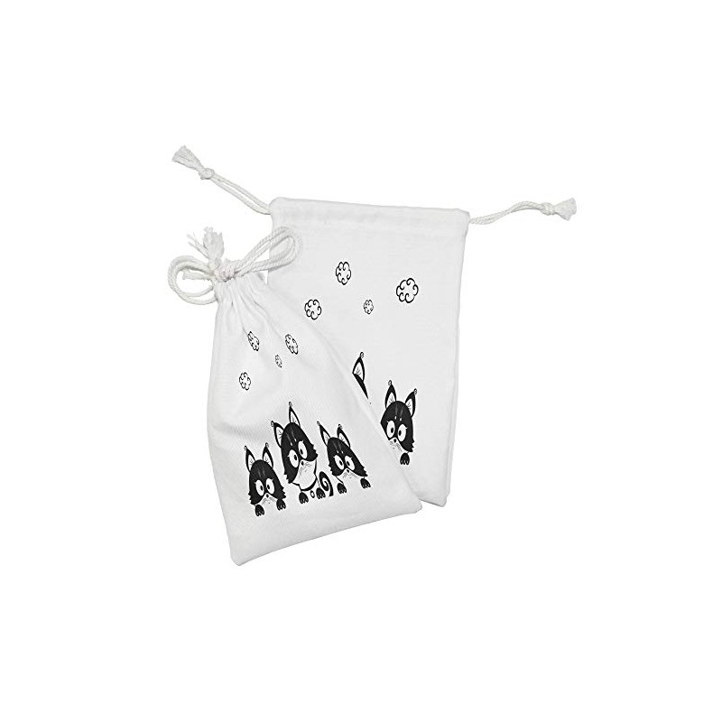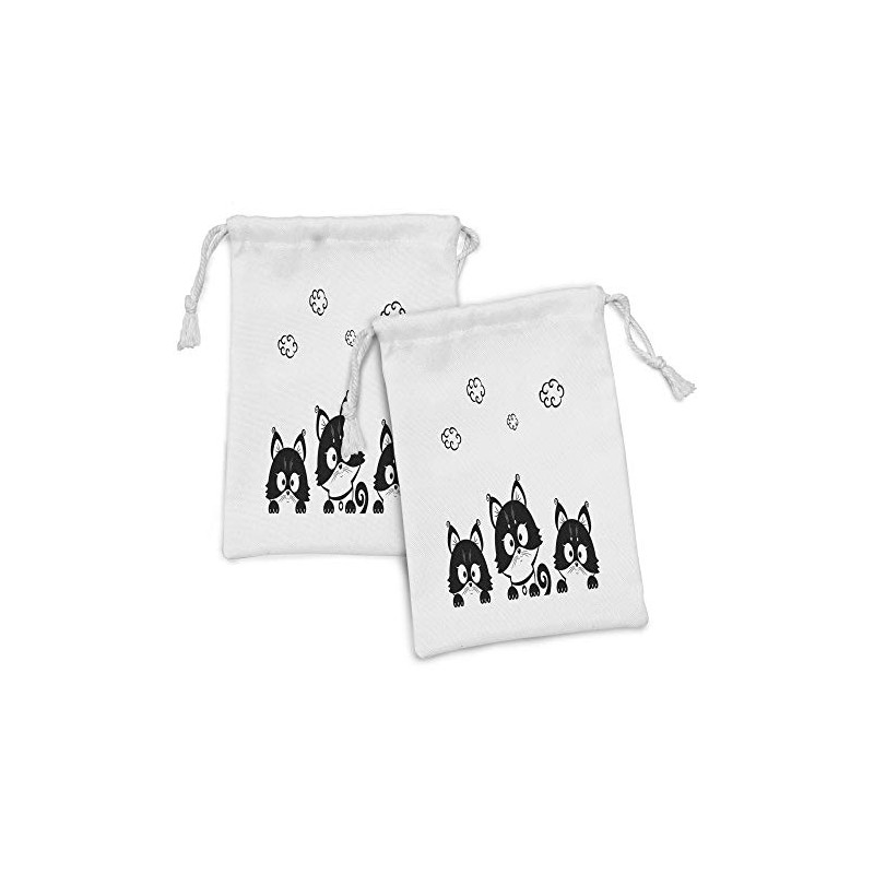 Ambesonne Black and White Fabric Pouch Set of 2, 3 Kittens with Clouds over Their Heads Small Thoughts Art, Small Drawstring Bag for Toiletries Masks and Favors, 9" x 6", Black and White