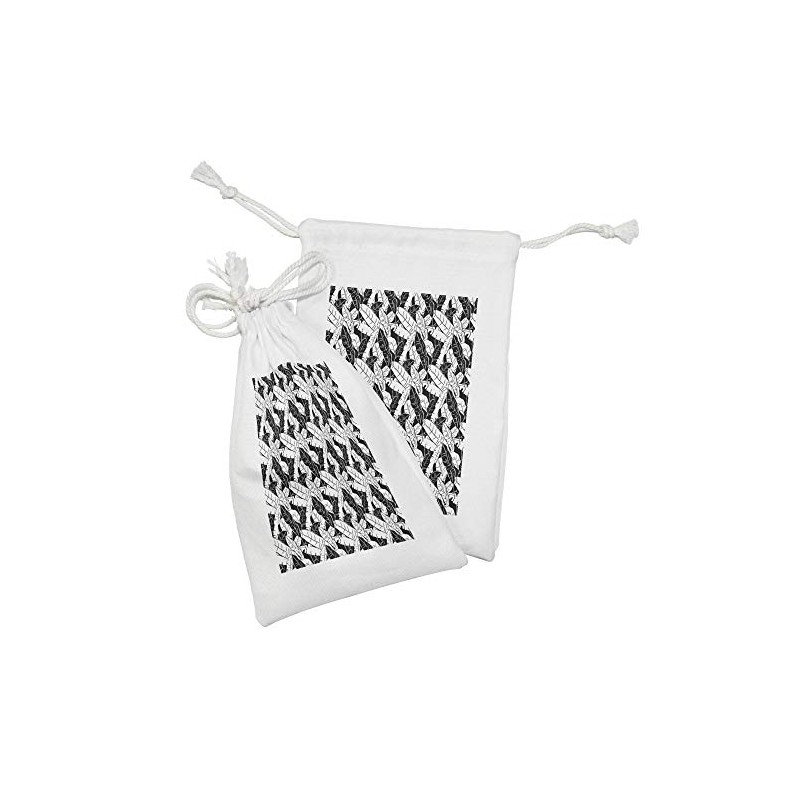 Ambesonne Botanical Fabric Pouch Set of 2, Monochromatic Banana Leaves Coconut Tropical Forest Sketch Style Exotic, Small Drawstring Bag for Toiletries Masks and Favors, 9" x 6", Black and White