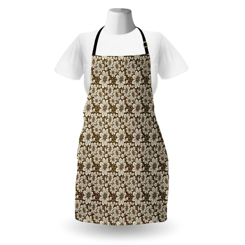 Ambesonne Brown and Cream Apron, Cosmos Flower Bouquet on Earthy Toned Background Feminine Pattern, Unisex Kitchen Bib Apron with Adjustable Neck for Cooking Baking Gardening, Brown and Cream