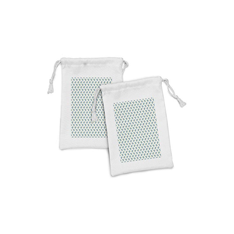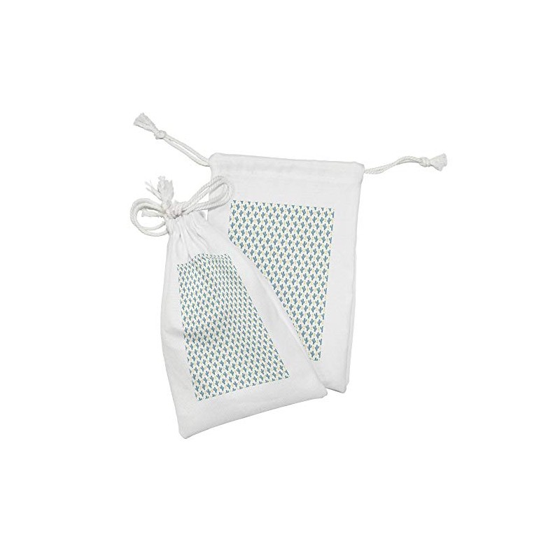Ambesonne Cactus Fabric Pouch Set of 2, Exotic Cacti and Plant Leaf Simplistic Pattern Modern Image, Small Drawstring Bag for Toiletries Masks and Favors, 9" x 6", Slate Blue Yellow