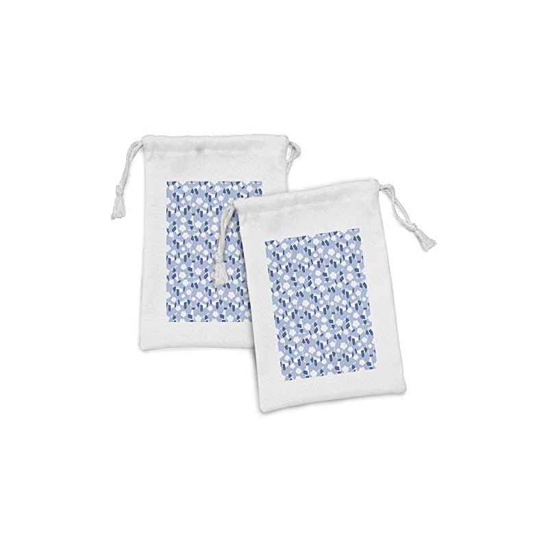 Ambesonne Cartoon Airplane Fabric Pouch Set of 2, Dreams of Flying Concept Retro Planes Clouds, Small Drawstring Bag for Toiletries Masks and Favors, 9" x 6", Pale Blue Navy Blue