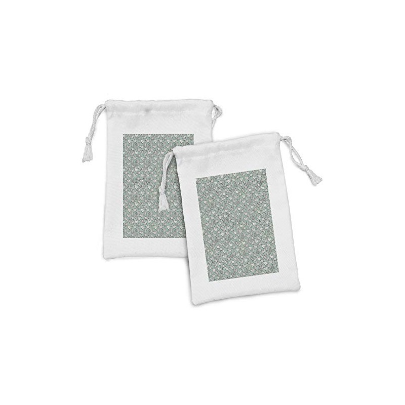 Ambesonne Chicken Fabric Pouch Set of 2, Doodle with Minimalist Stripes Dots Farm Countryside Abstract Print, Small Drawstring Bag for Toiletries Masks and Favors, 9" x 6", Almond Green and White