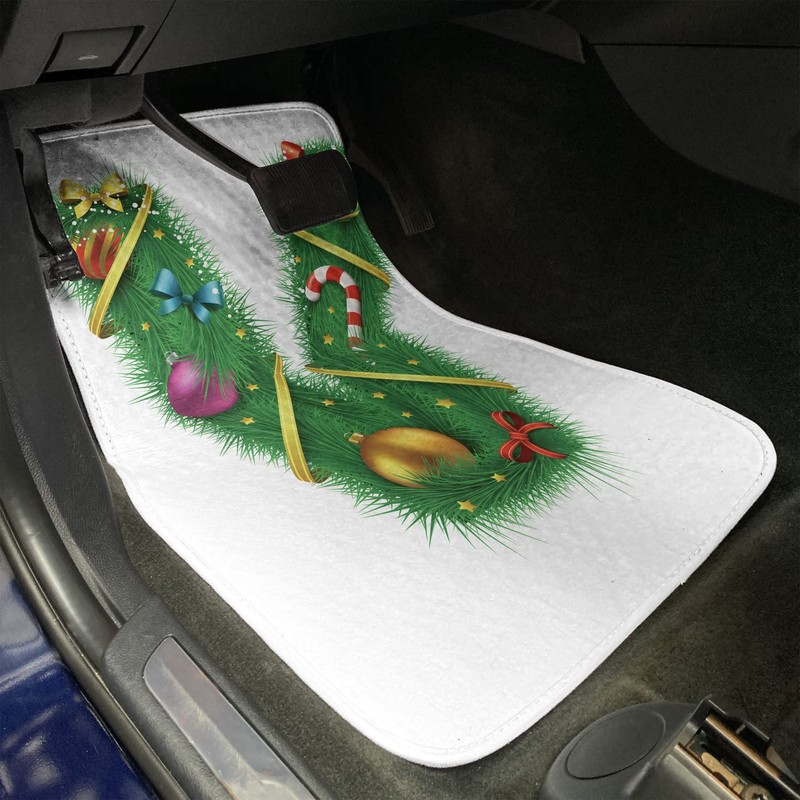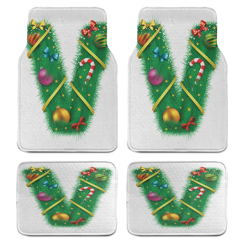 Ambesonne Christmas Alphabet Car Mat Set of 4, Letter of V Motif with Stars Candy Stick Pattern on Plain Backdrop, Front & Back Seat Floor Mat Durable PVC Backing Car Accesory, White and Green