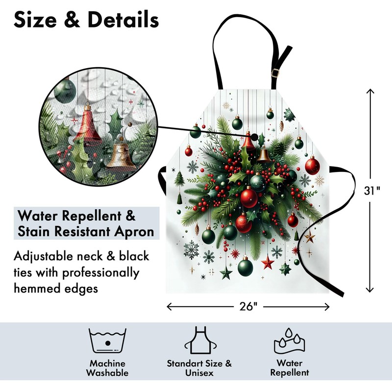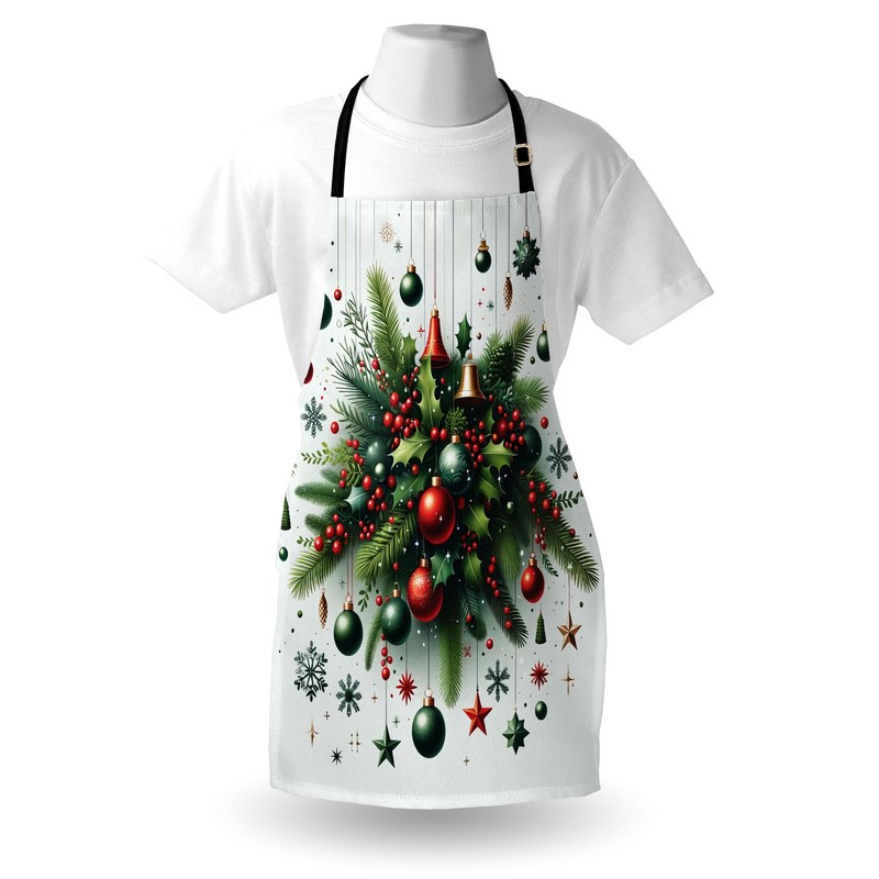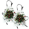 Ambesonne Christmas Apron Pack of 2, Holiday Season Botanical Themed Pine Branches Snowflakes Stars Balls, Unisex Kitchen Bib with Adjustable Neck, 2 Pcs - Adult Size, Hunter Green Vermilion