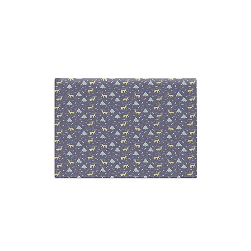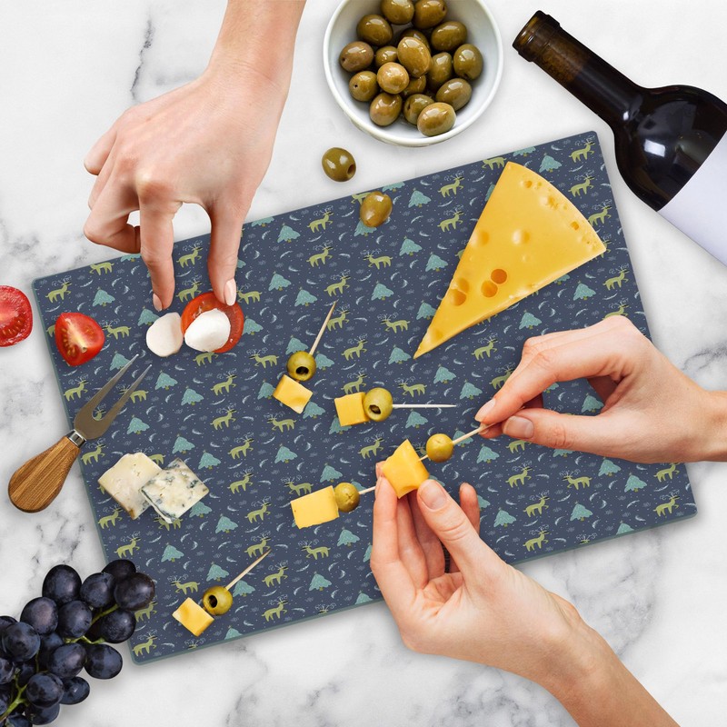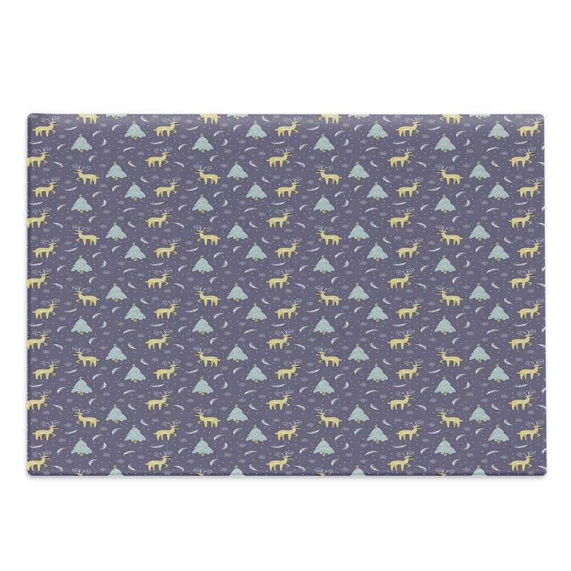 Ambesonne Christmas Cutting Board, Christmas Themed Winter Snow Feather Deer and Pine Tree Composition, Decorative Tempered Glass Cutting and Serving Board, Large Size, Mustard and Purple Grey