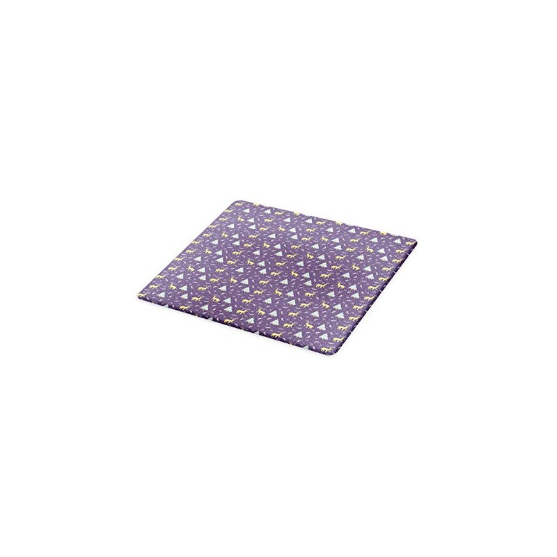 Ambesonne Christmas Cutting Board, Christmas Themed Winter Snow Feather Deer and Pine Tree Composition, Decorative Tempered Glass Cutting and Serving Board, Small Size, Mustard and Purple Grey