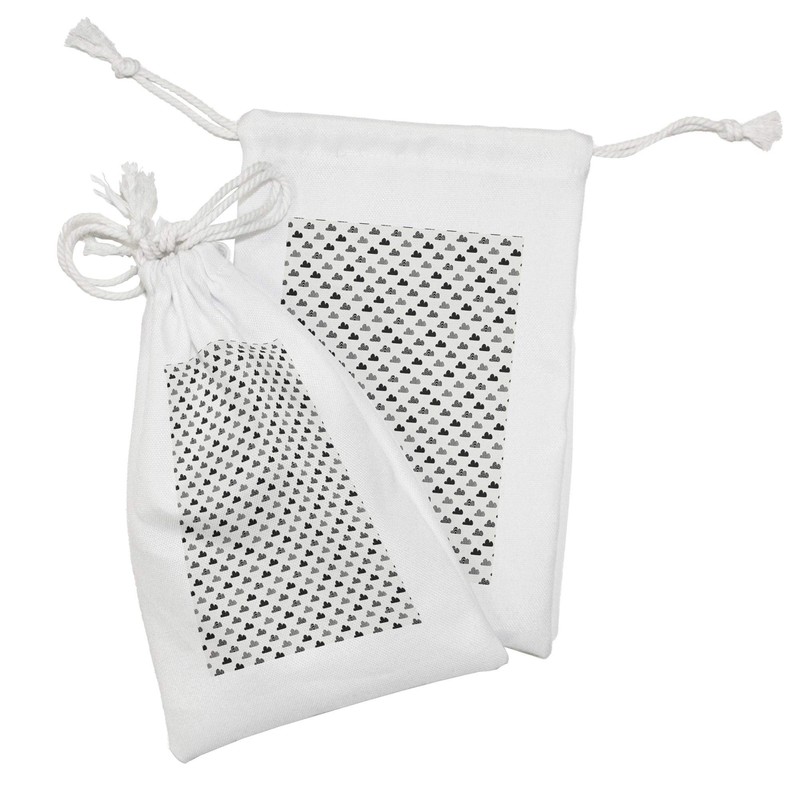 Ambesonne Clouds Fabric Pouch Set of 2, Abstract Repetitive Sky Elements Soft Tones Simplistic Illustration, Small Drawstring Bag for Toiletries Masks and Favors, 9" x 6", Charcoal Grey Off White