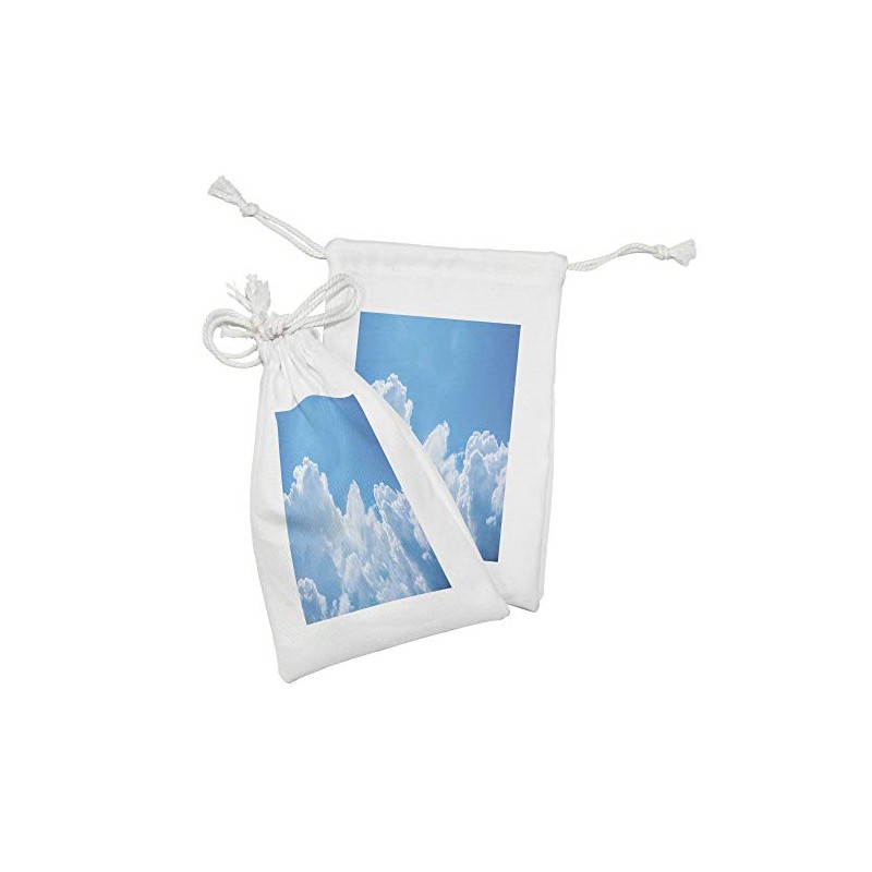 Ambesonne Clouds Fabric Pouch Set of 2, Crystal Clouds in the Sky Heavenly Life Hope Surface of Planetary Body Image, Small Drawstring Bag for Toiletries Masks and Favors, 9" x 6", Blue White