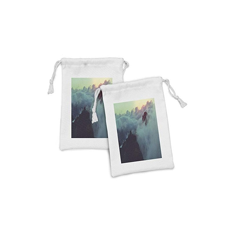 Ambesonne Clouds Fabric Pouch Set of 2, Hills in the Large Cumulus Clouds View Mountains Tranquility Nature Theme, Small Drawstring Bag for Toiletries Masks and Favors, 9" x 6", Blue Brown