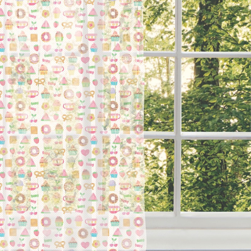 Ambesonne Dessert Tulle Curtains with Rod Pocket, Confectionary Pattern of Pretzels and Candies on Pinky Polka Dotted Background, Sheer Drape for Wedding Party 2 Panels, 108" x 63", Multicolor