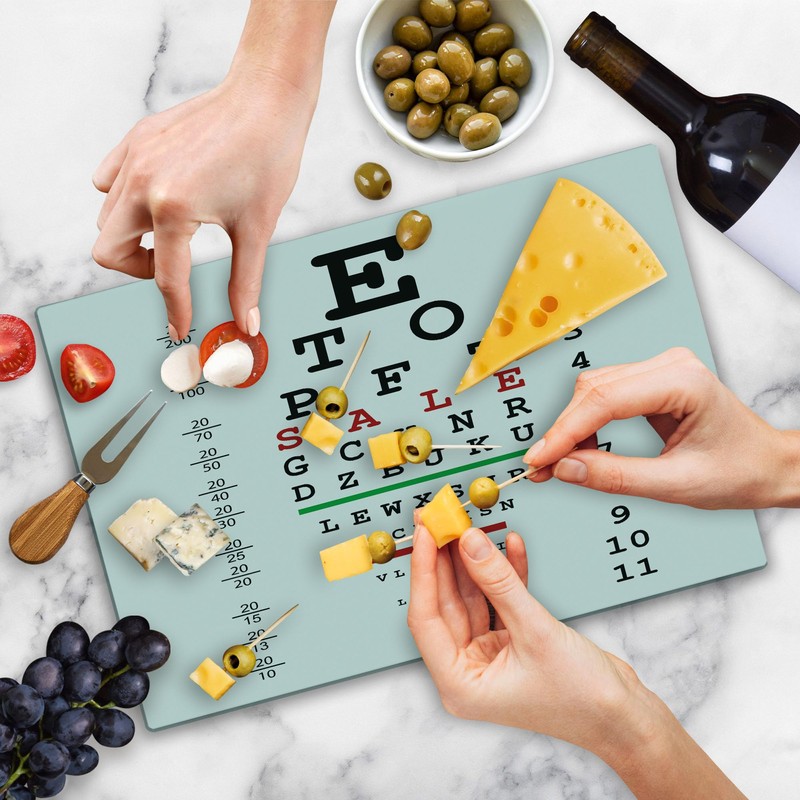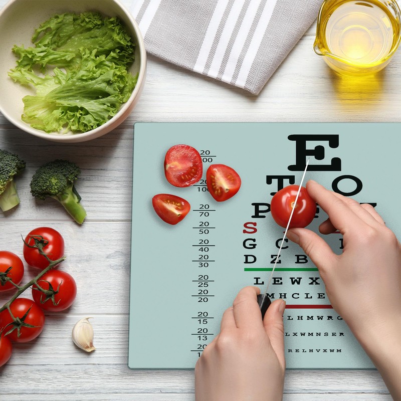 Ambesonne Eye Chart Cutting Board, Optical Eye Test Doctor Control Examination of the Eyesight, Decorative Tempered Glass Cutting and Serving Board, Large Size, Charcoal Grey Green