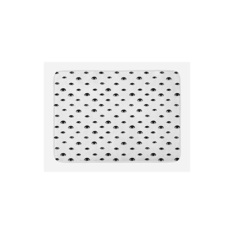 Ambesonne Eyelash Bath Mat, Repeating Hand Drawn Style Black Eye Bohemian Style Design, Plush Bathroom Decor Mat with Non Slip Backing, 30.2" x 20", Black White