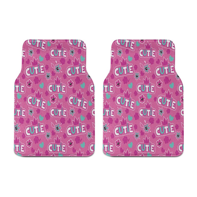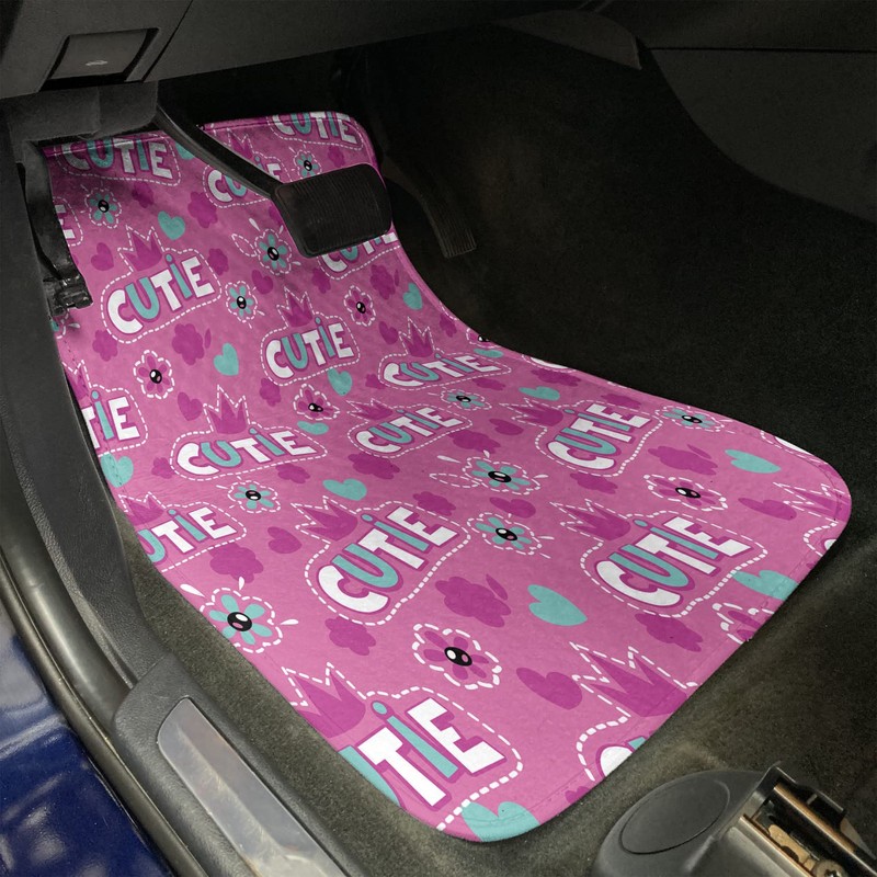 Ambesonne Feminine Car Mat Set of 2, Cutie Lettering with Crown Pattern and F...