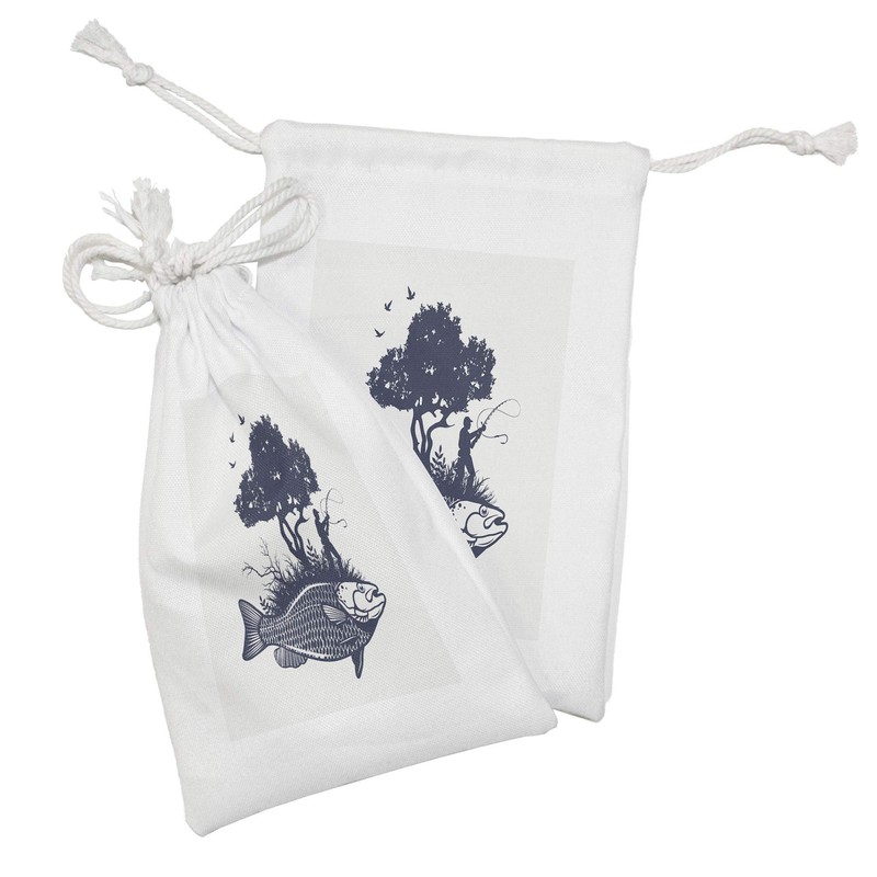 Ambesonne Fishing Fabric Pouch Set of 2, Abstract Graphic of Man and Tree Sil...