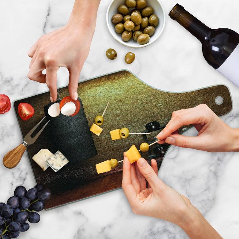 - Size - Cutting area: 8" X 7.5", Handle: 6" - Thickness: 1/8 inch. For cutting and serving food.