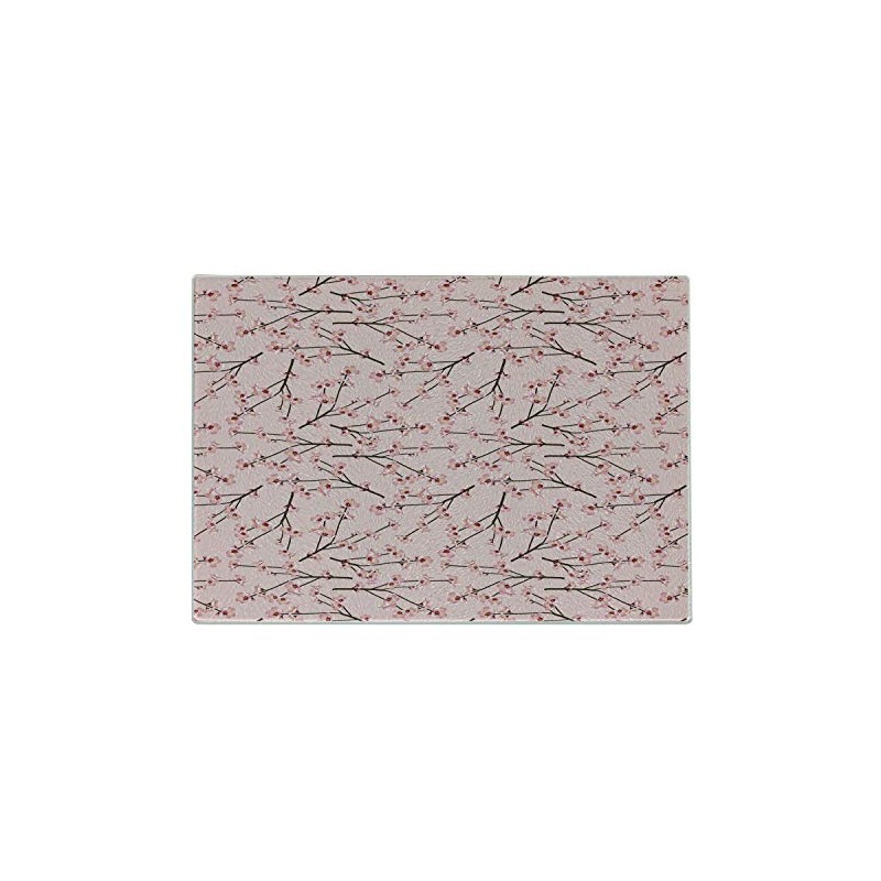 Ambesonne Floral Cutting Board, Japanese Momo Peach Tree Flowered Branches in Repetitive Pattern Image, Decorative Tempered Glass Cutting and Serving Board, Small Size, Rose and Dark Cocoa