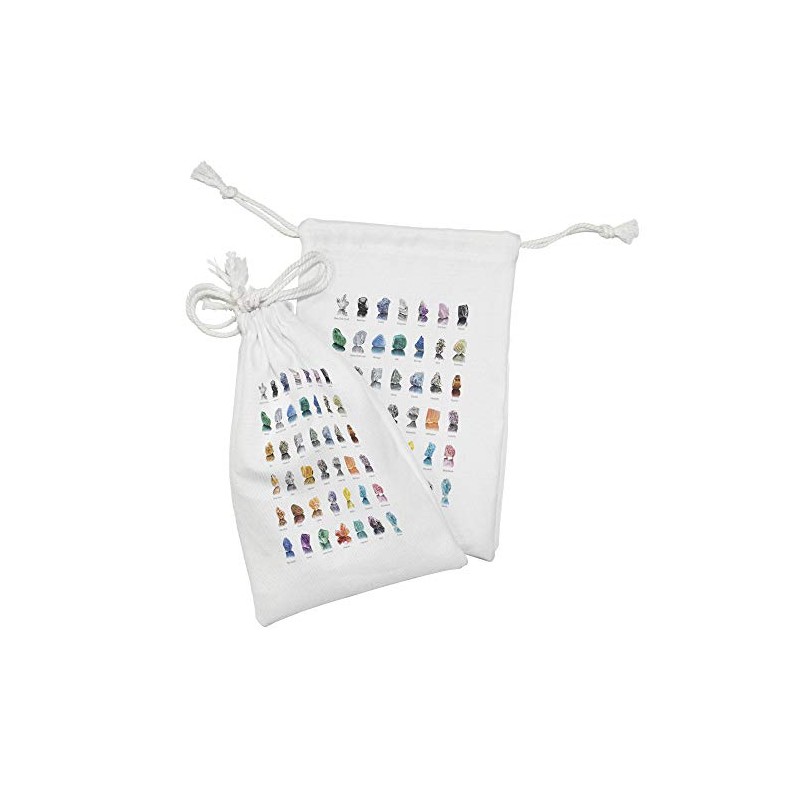 Ambesonne Gemstone Fabric Pouch Set of 2, Composition of Gemstones with Names Tiger Eye Sulphur and Ruby Mineral Geology, Small Drawstring Bag for Toiletries Masks and Favors, 9" x 6", Multicolor