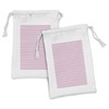 Ambesonne Geometric Fabric Pouch Set of 2, Pink Toned and Grey Lines on White Backdrop Striped Pattern Modern Design, Small Drawstring Bag for Toiletries Masks and Favors, 9" x 6", White Pink Grey