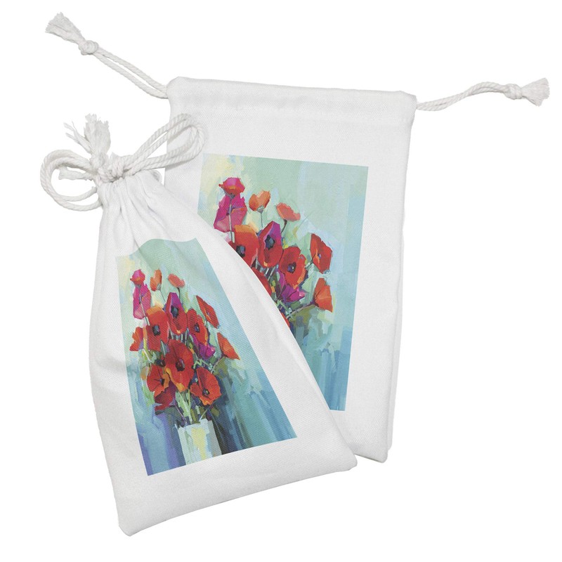 Ambesonne Impressionist Fabric Pouch Set of 2, Floral Painting Colorful Bouquet of Poppy Flowers in Vase, Small Drawstring Bag for Toiletries Masks and Favors, 9" x 6", Multicolor