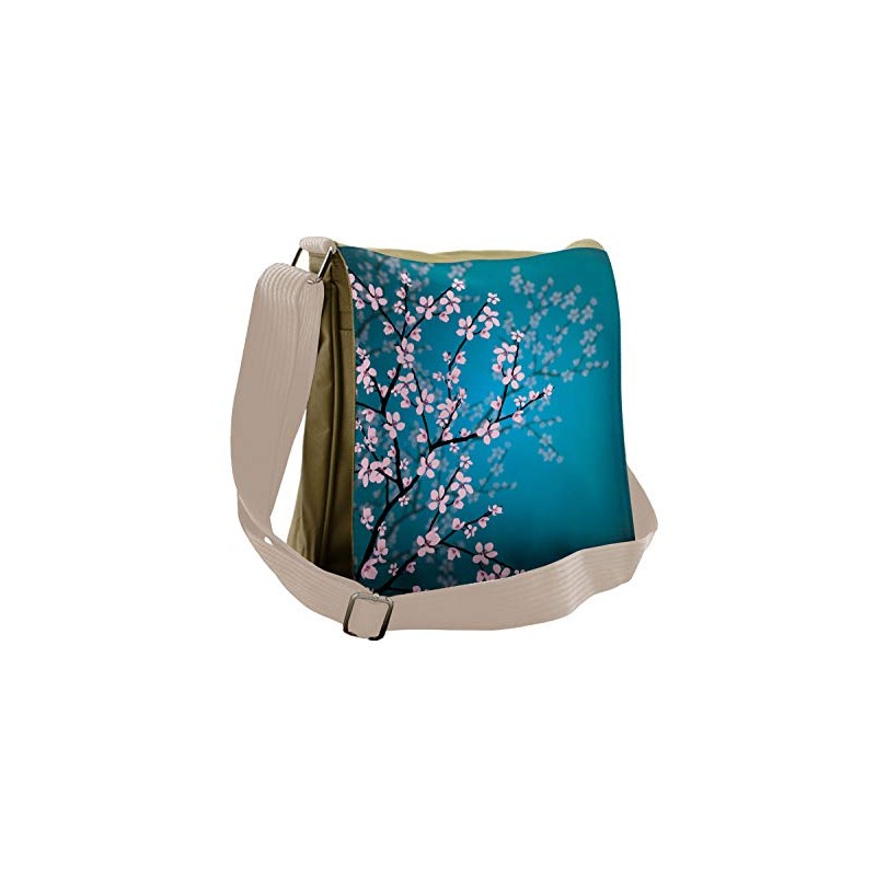 Ambesonne Japanese Messenger Bag, Sakura Bloom Pattern, Unisex Cross-body