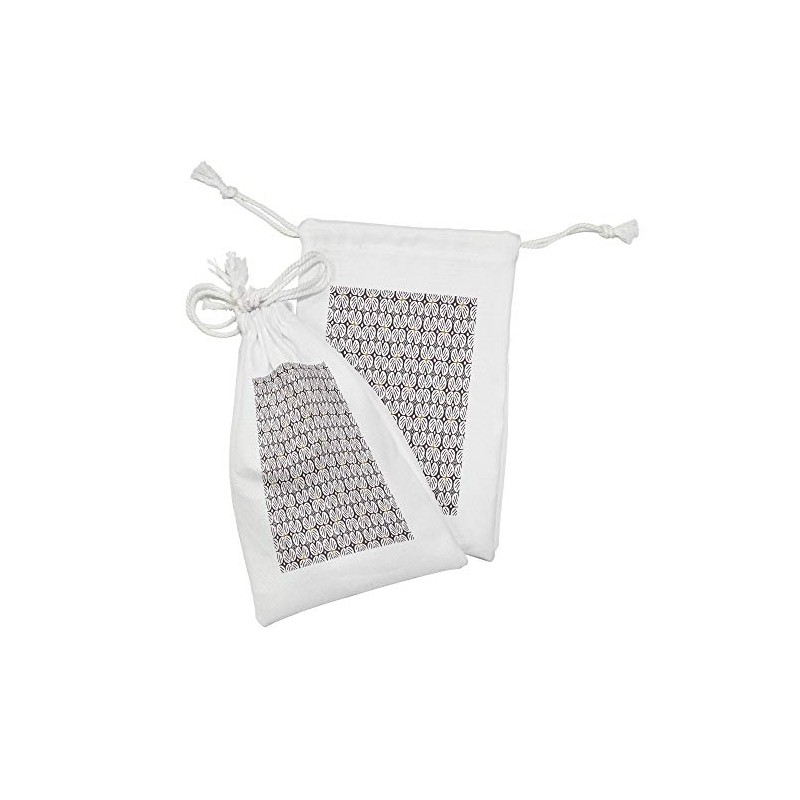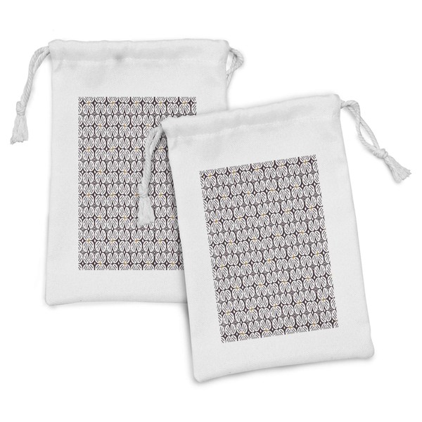 Ambesonne Jasmine Fabric Pouch Set of 2, Abstract Doodle Jasmine Motifs in Repeating Order Retro Print, Small Drawstring Bag for Toiletries Masks and Favors, 9" x 6", Earth Yellow Dark Taupe