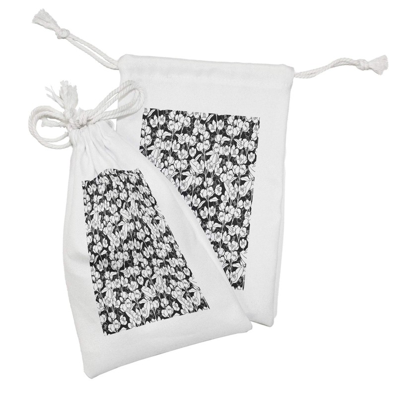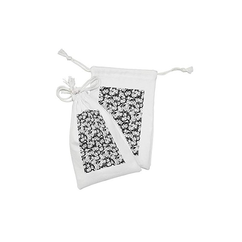 Ambesonne Jasmine Fabric Pouch Set of 2, Blossoming Jasmine Flowers Pattern in Packed and Repeating Form Design, Small Drawstring Bag for Toiletries Masks and Favors, 9" x 6", Charcoal Grey and White