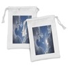 Ambesonne Landscape Fabric Pouch Set of 2, Clear Weather Vivid Vibrant Sun on Sky with Clouds Solar of Clean Energy Power Art, Small Drawstring Bag for Toiletries Masks and Favors, 9" x 6", Grey Blue