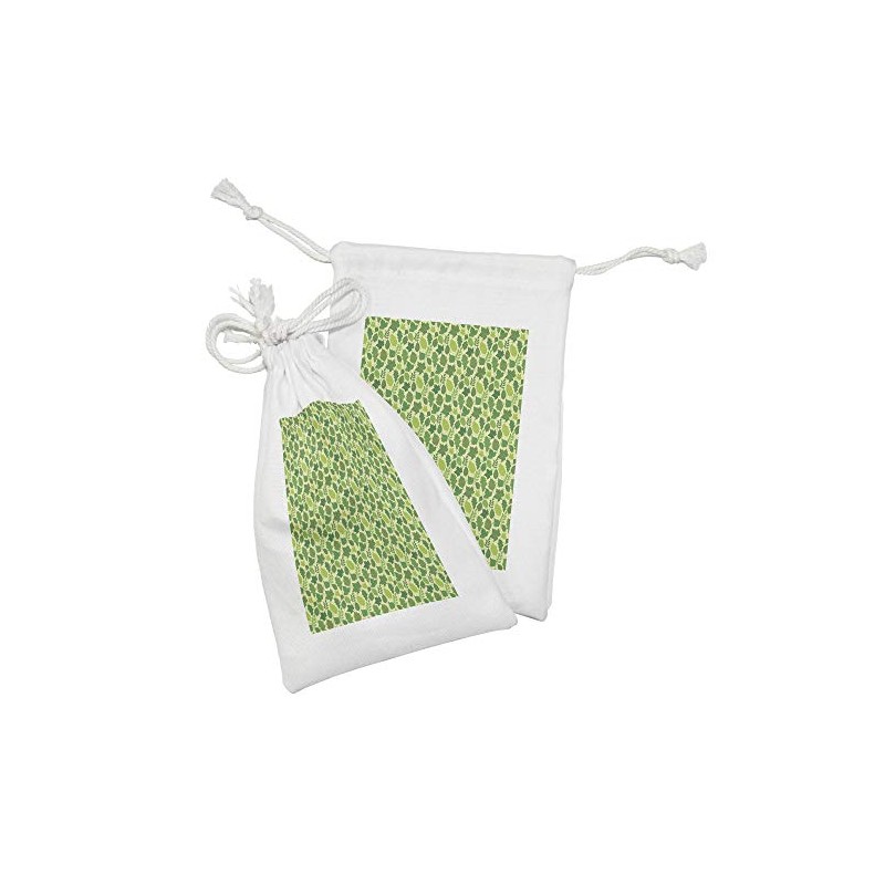 Ambesonne Leaves Fabric Pouch Set of 2, Botanical Herbs Plants Rhythmic Nature Elements on Pastel Toned Backdrop, Small Drawstring Bag for Toiletries Masks and Favors, 9" x 6", Lime Green Apple Green