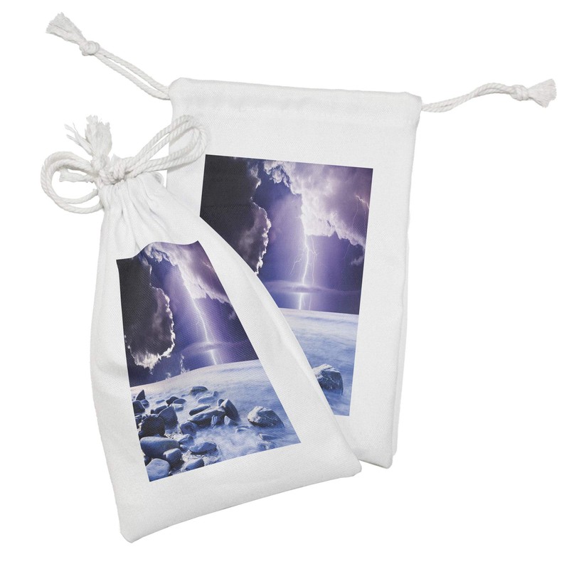 Ambesonne Nature Fabric Pouch Set of 2, Dark Ominous Rain Clouds with Mystic Sky Scenery with Electrical Thunder Photo, Small Drawstring Bag for Toiletries Masks and Favors, 9" x 6", Blue Purple