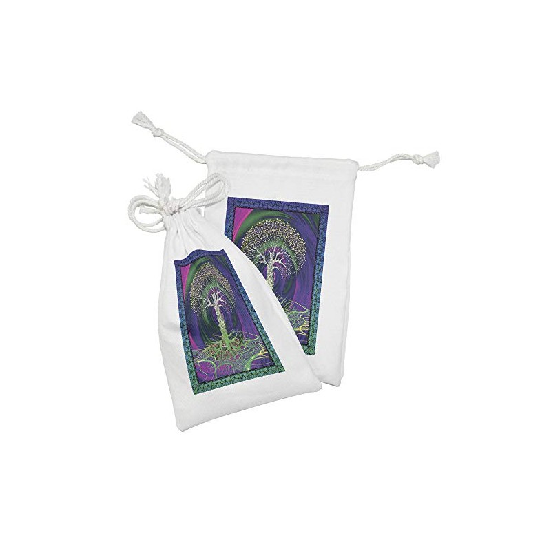 Ambesonne Nature Fabric Pouch Set of 2, Digital Psychedelic Tree of Life Turn...