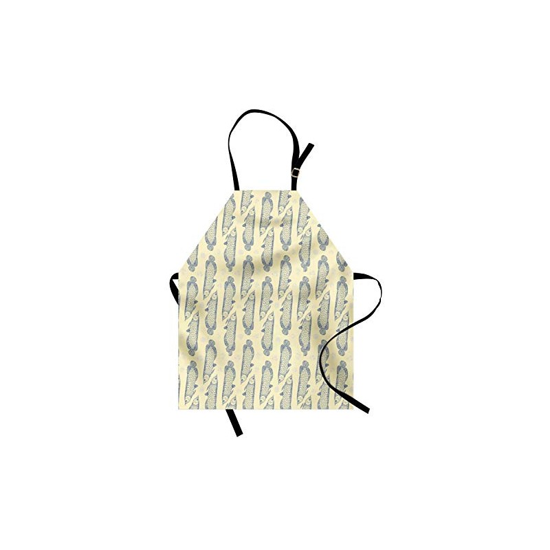 Ambesonne Nautical Apron, Marine Theme Arowana Fish Pattern Along Seaweeds and Seashells, Small Apron Bib with Adjustable Ties for Baking Painting, Small Size, Pale Yellow and Blue Grey