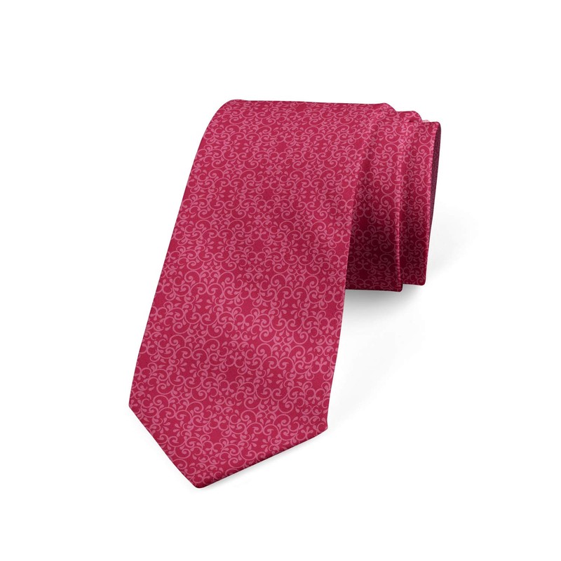 Ambesonne Necktie, Flower-Like Dainty Curves, 3.7", Dried Rose and Raspberry
